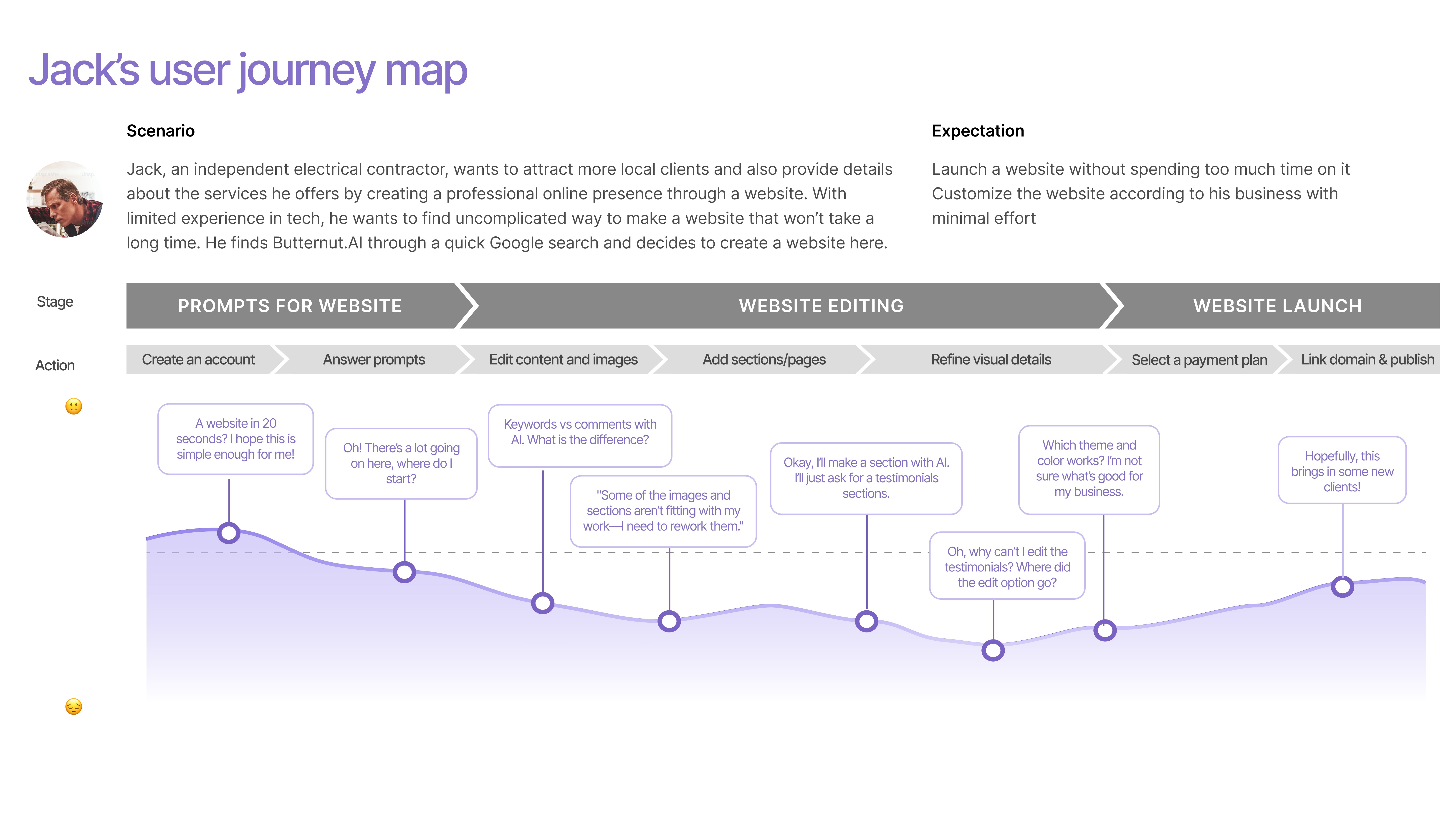 Butternut AI is a generative AI platform that enables small business owners to create a website in under 20 seconds - just by using prompts. As a team of five, guided by a design lead, we collaborated closely with the CEO to conduct a usability audit and enhance both the prompt input and editor experiences