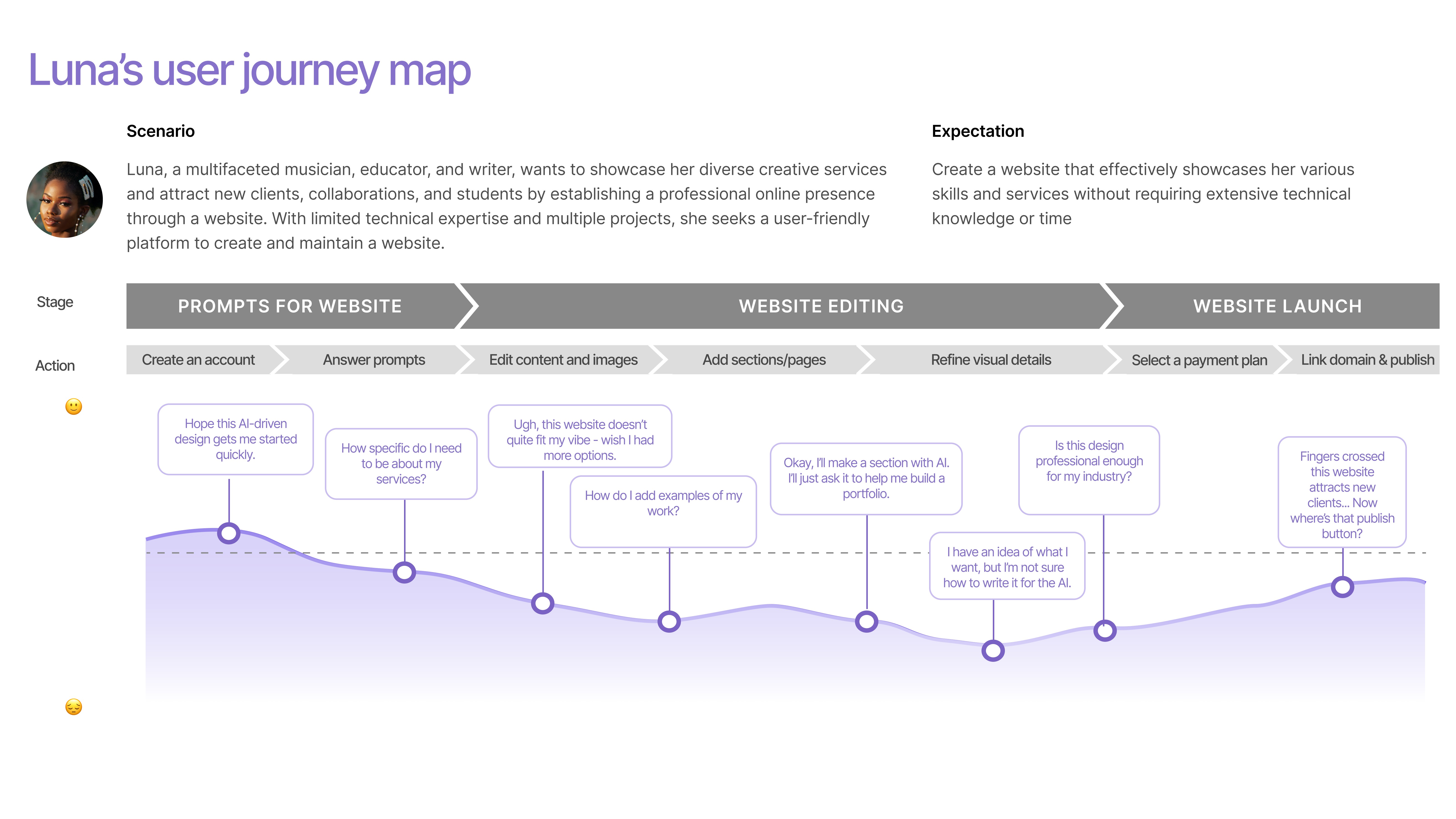 We developed a jobs-to-be-done framework for website creation and editing, then used it to guide wireframe iterations and identify a relevant MVP editor redesign